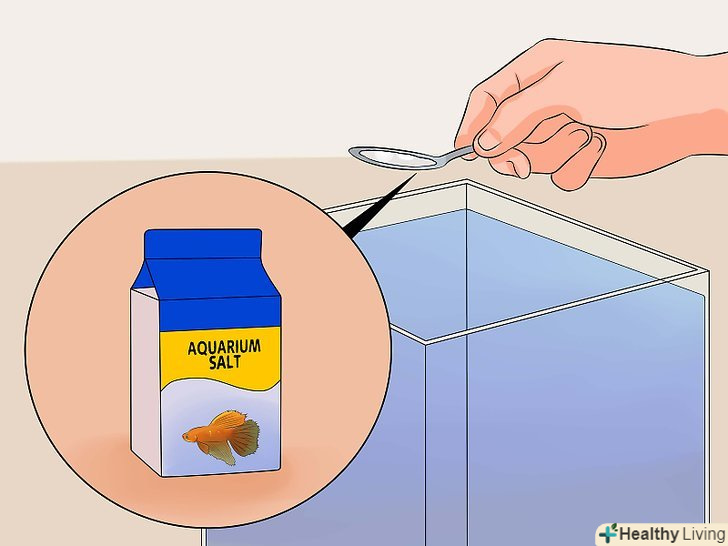 Для боротьби з бактеріальними інфекціями додавайте в акваріум акваріумну сіль. бактеріальні інфекції на зразок плавникової гнилі можна запобігти додаванням у воду акваріумний солі. На відміну від столової солі, акваріумна сіль не містить в собі ніяких добавок у вигляді йоду або силікату кальцію. [21]- Не використовуйте акваріумну сіль або медикаменти на основі міді, якщо в акваріумі мешкають равлики або коридораси (панцирники) — для цих молюсків і риб подібні речовини смертельно небезпечні. Неритові равлики стійкі до впливу солі, але ось з міддю їм не впоратися, так що будьте обережні. [22]