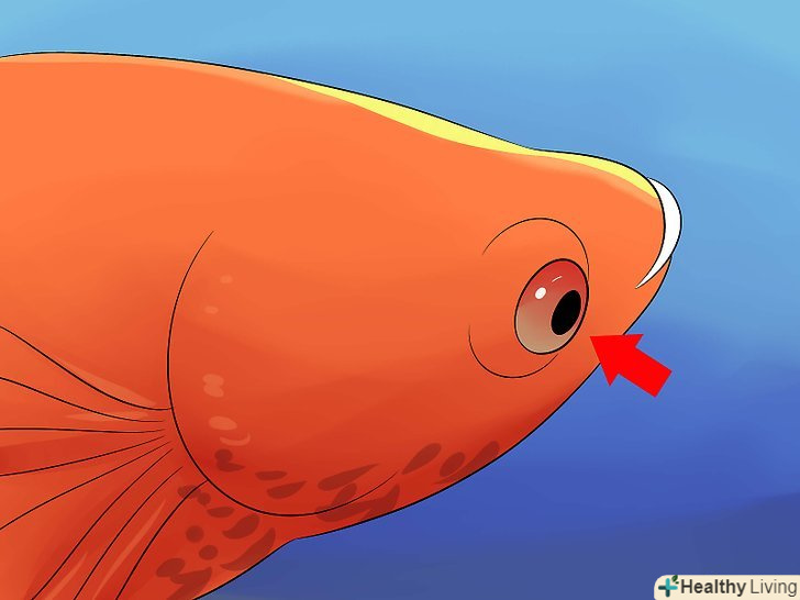 Огляньте очі риби, щоб зрозуміти, чи не виступають вони зайвим чином з голови. подібний симптом характерний для бактеріальної інфекції, званої хворобою вирячених очей. Дана хвороба може виникати через поганий стан акваріумної води або при більш серйозному захворюванні, наприклад, туберкульозі. На жаль, туберкульоз у риб не лікується і тому смертельний для півників. [2]