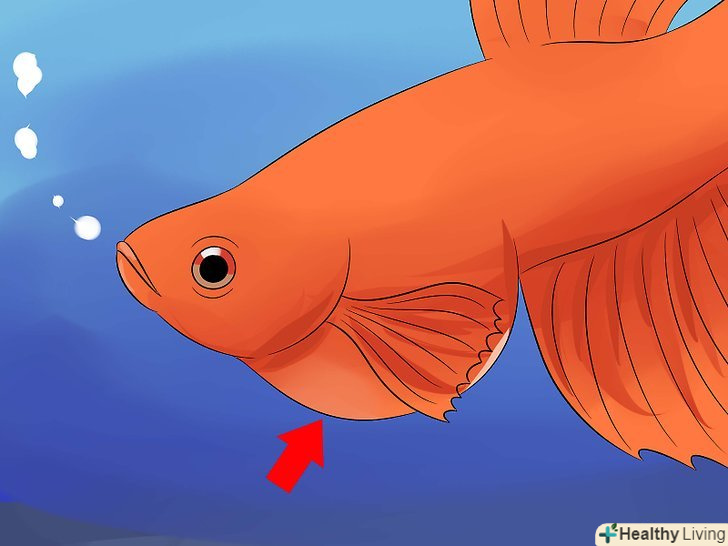Перевірте, чи немає у риби відстовбурчених лусочок і здуття. це характерно для водянки — бактеріальної інфекції нирок риби. Дане захворювання може призводити до відмови нирок і накопичення рідини в тілі риби, що створює здуття. Нерідко хвороба вражає риб, ослаблених поганим станом води, або передається шляхом поїдання зараженого корму. [3] [4]- При відмові нирок у риби і накопиченні рідини в її тілі результат буде летальним. Для водянки не існує ліки, але ви можете захистити риб від даного захворювання, якщо не будете годувати їх живими хробаками або зараженим кормом. При підозрі на водянку у свого півника вам слід відсадити його від інших риб для запобігання поширенню хвороби.