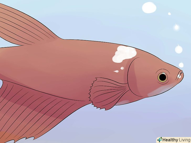 Зверніть увагу на появу на тілі риби білих цяточок або плям, схожих на крупинки солі або піску. це є симптомом іхтіофтіріозу. Цяточки на тілі риби можуть бути злегка опуклими, а сам вихованець, ймовірно, буде свербіти об предмети в акваріумі через роздратування і свербіння. У риби також можуть спостерігатися проблеми з диханням, і вона буде часто хапати атмосферне повітря біля поверхні води. Іхтіофтіріоз вражає риб, постійно піддаються стресу через перепади температури і жорсткості води. [5]