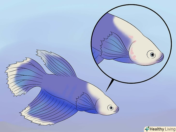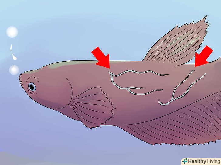 Подивіться, чи не стали плавники і хвіст риби пошарпаними і бляклими. це є симптомом бактеріальної інфекції, що викликає гниття плавників, хвоста і рота риби. Плавникової гнилі піддаються ті риби, яких утискають їх сусіди по акваріуму, і чиї плавники обгризаються родичами. Поганий стан акваріума також сприяє розвитку плавникової гнилі. [6]- На щастя, якщо своєчасно приступити до лікування гнилі, більшість півників в змозі відростити заново плавники і хвости. Однак відросли плавники і хвіст риби можуть виявитися вже не настільки барвистими, якими вони були раніше.