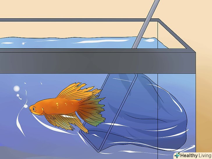 Посадіть хвору рибку на карантин. Якщо ваша Бійцівська рибка живе в загальному акваріумі, візьміть чистий сачок і відсадіть її в окремий акваріум меншого розміру з системою фільтрації. Це дозволить вам обробляти воду даного акваріума ліками від конкретного захворювання без нанесення шкоди іншим Рибам.- Вам необхідно переконатися в тому, що температура води в карантинному акваріумі відповідає необхідним параметрам для утримання півників, тобто знаходиться в межах 25,5–26,7 °C. [10]