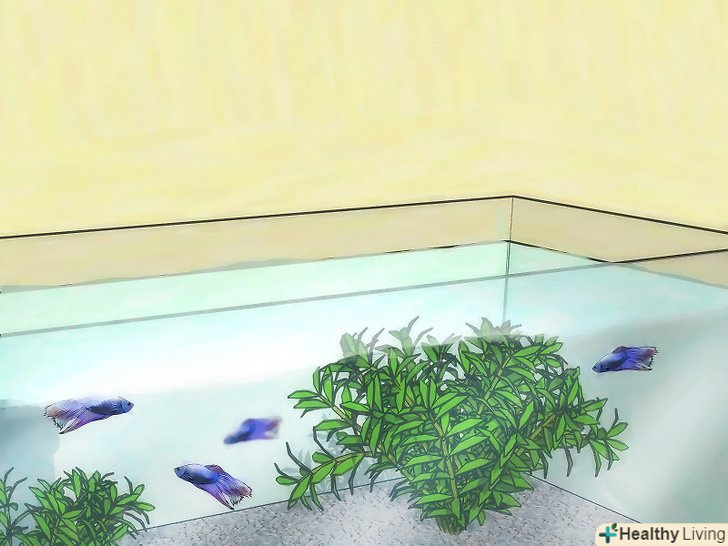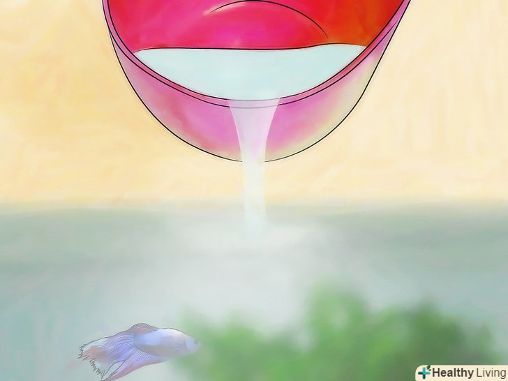 Приступите до заповнення акваріума свіжою водою. Візьміть трохи свіжої води з тієї ємності, в яку Ви відсадили риб, і залийте її в акваріум. [17] Вода в акваріумі повинна дійти до того рівня, при якому рибки вже зможуть спокійно в ньому плавати.