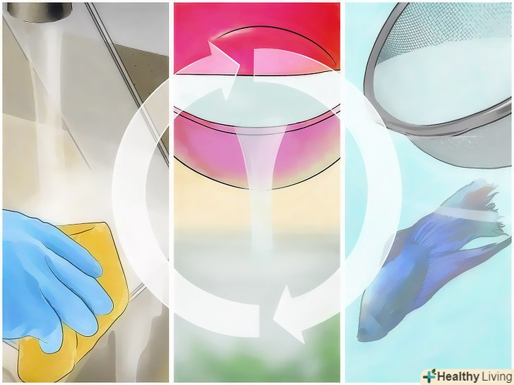 Почистіть свій акваріум. [16] злийте з акваріума стару воду. Обережно почистіть стінки акваріума, використовуючи виключно воду і чисту м'яку ганчірочку або губку. Мило та інші засоби для чищення здатні завдати шкоди вашим Рибам. Обов'язково промийте гравій, щоб очистити його від екскрементів, залишків корму та інших забруднень.