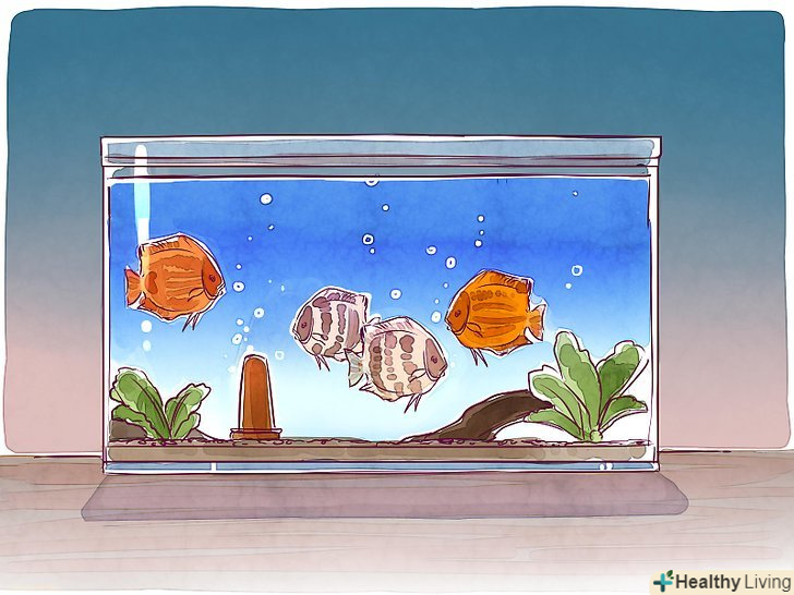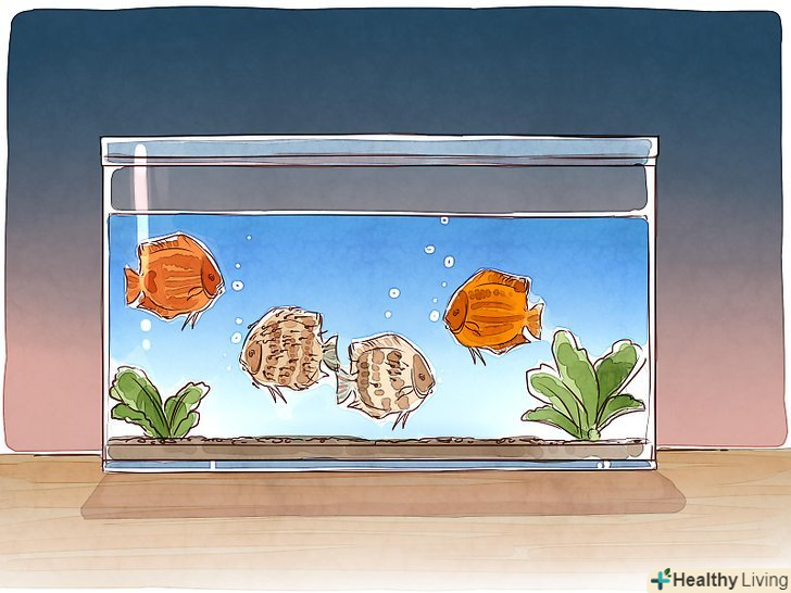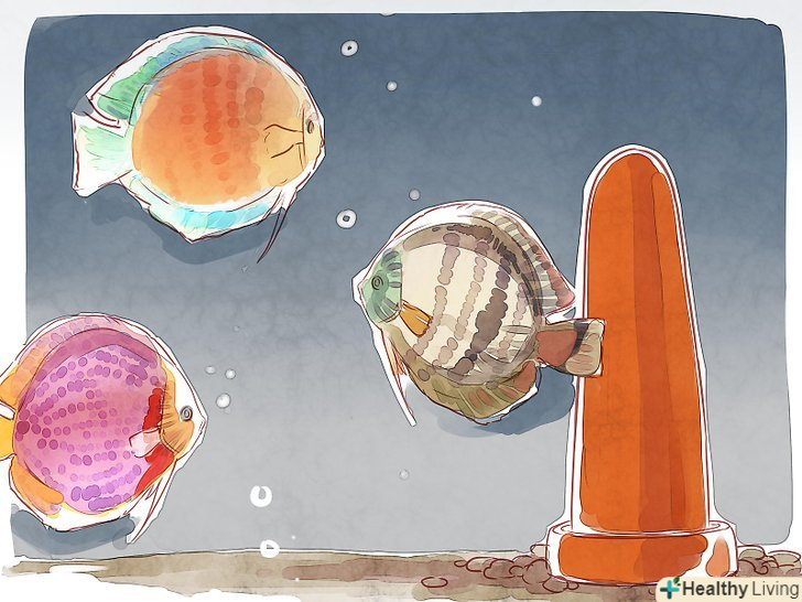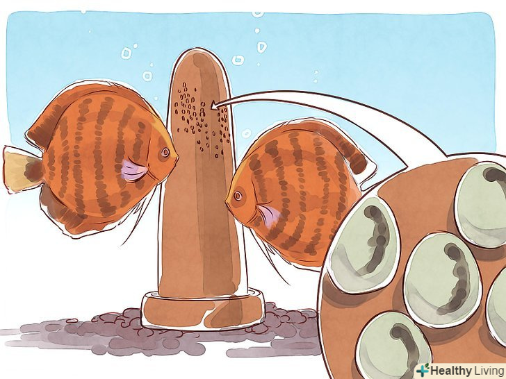 Вам необхідно прийняти рішення - ви можете ростити молодих особин разом з батьками або окремо. якщо все йде добре, ви можете залишити молодих рибок в загальному акваріумі. Це збільшить їх шанси на виживання. Деякі дорослі рибки можуть з'їсти ікру або заразити молодих особин хворобою. Якщо батьки були вирощені в загальному акваріумі разом зі своїми батьками, вони будуть вести себе адекватно і їх можна тримати разом з ікрою і молодими особами.- Якщо ви знаєте когось, хто вже розводив рибок дискус, ви можете попросити у нього рибок-батьків для себе на деякий час. Вони допоможуть вам виростити молодих особин. [13]