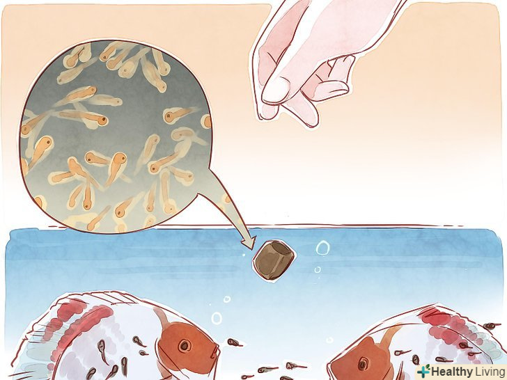 Годуйте маленьких рибок артемією-солоноводною креветкою. вони зможуть їсти креветку вже через 4-5 днів після того, як почнуть плавати. Годувати малюків креветками можна 4 рази на день. [15] [16]- Зберіть мертвих креветок, якщо рибки їх не з'їли в той же день, щоб тримати воду чистою.