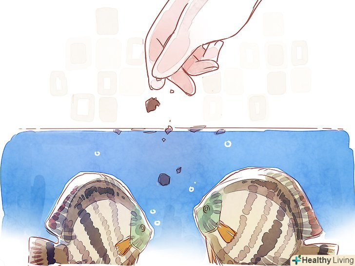 Рибок дискус потрібно годувати твариною протеїном. для цього їм потрібна жива їжа, наприклад, комарі, креветки, білі черв'яки і т.д. якщо ви не можете годувати рибок живою їжею, нарізайте дрібними шматочками яловиче серце. В крайньому випадку використовуйте їжу для рибок багату протеїном. Ви можете купити різні харчові добавки, шпинат в порошку або іншу суху їжу з корисними речовинами. [8] [9]- Якщо ви будете збирати живу їжу з прісних водойм самостійно, ви створите ризик передачі різних хвороб вашим рибкам. Краще купувати живу їжу в магазинах для тварин або брати її з іншого надійного джерела.