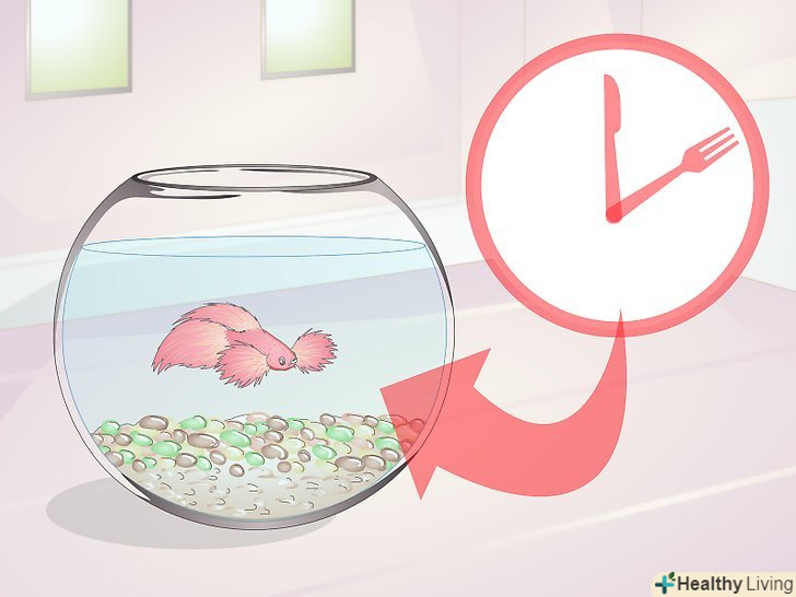 Годуйте півника регулярно. від особини до особини півники варіюються в своїх перевагах до харчування, тому поекспериментуйте, щоб визначити, скільки їжі потрібно вашому півнику. Встановіть час годувань, наприклад, один раз вранці і один раз ввечері. Якщо ви будете точно дотримуватися часу, то можете помітити, що рибка вже чекає вас, коли підходить час годівлі!- Намагайтеся не перегодовувати рибку. Перегодовування може стати проблемою для деяких півників, які будуть їсти без зупинки (що може призвести до смерті). З іншого боку, інші півники перестають їсти як тільки наситяться. Перегодовування може привести до здуття, що саме по собі не так небезпечно як здуття, викликане водянкою. Проте воно згодом може привести до проблем з повітряним міхуром, що також може привести до смерті.