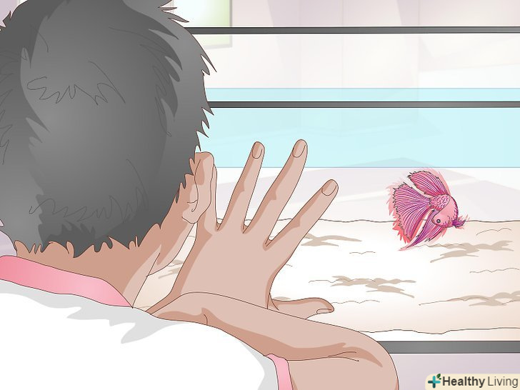 Грайте з півником. на півників приємно дивитися і проводити з ними час. Ви можете пограти зі своєю рибкою, переміщаючи палець по склу акваріума (ніколи не стукайте по акваріуму і не плещіть воду в ньому). Спостерігайте за тим, як півник слідує за вами. Крім того, не забудьте дати йому ім'я!- Ніколи не стукайте по склу акваріума. Така поведінка збуджує рибку і може ввести її в стан шоку і подальшої смерті. Для взаємодії з рибкою за допомогою руху просто торкніться пальцем скла і повільно поводите їм, щоб зрозуміти чи буде рибка слідувати за ним. Якщо рибка відскочила назад і здається наляканою, негайно припиніть. Ви можете спробувати знову, коли півник звикне до вас і буде менше боятися.