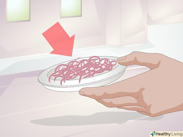 Прибирайте надлишки їжі, які півник не з'їдає. аналогічно, зверніть увагу на півника, чи не плюється він їжею. Це може бути знаком того, що ваш півник вибірковий в їжі, або гранули занадто великі для його рота. На жаль, більшість великих компаній-виробників корму для акваріумних рибок не усвідомлюють, що роти у півників менше, ніж у золотих чи інших рибок.- Можна спробувати розрізати гранули навпіл лезом бритви або іншим гострим предметом, щоб петушку було легше їсти. Якщо і після цього він відмовляється від їжі, спробуйте використовувати іншу марку гранульованого або сухого корму.