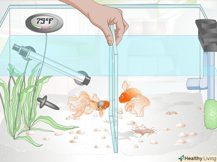 Починайте планувати заздалегідь. створення правильних умов для розведення займає багато часу. Купіть рибок приблизно за рік до цього. Липень і серпень – найкращий час покупки рибок, так як золоті рибки воліють розмножуватися навесні. [1] Вам необхідно, щоб рибка належним чином звикла до свого місця проживання і звільнилася від стресу перед сезоном розмноження, тому постарайтеся все спланувати заздалегідь!- Перше, що вам необхідно зробити (маючи на увазі те, що у вас вже є невеликий акваріум на 15 л.), це почистити новий придбаний Акваріум нерестовик. Додавши 80 очних крапель формальдегіду, 6 крапель сульфату міді і 1 маленьку дозу терраміцину, ви зможете почистити рибок і акваріум, щоб всі були здорові.