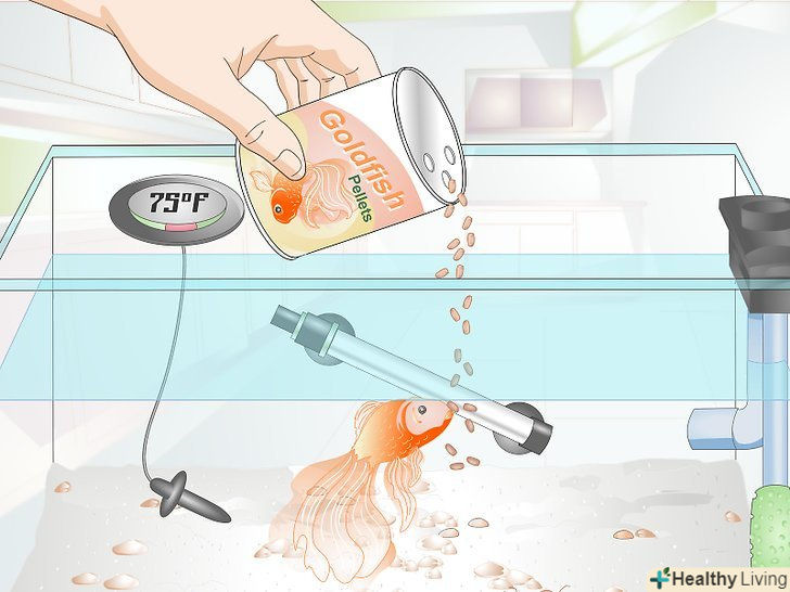 Почніть з поліпшення дієти золотих рибок. Без різких змін в дієті почніть додавати їм в їжу негранульований живий корм (артемії, мотиль). Це симулює природну щедрість весни, коли золоті рубки воліють розмножуватися. Дамо в загальних рисах пару порад по годівлі золотих рибок:- Годуйте золотих рибок невеликими кількостями їжі, але часто. Годуйте їх три рази на день, не перегодовуючи. Багато власників золотих рибок роблять помилку і занадто перегодовують риб; надлишки корму залишаються не з'їденими і тонуть, розкладаючись і псуючи воду. [3]