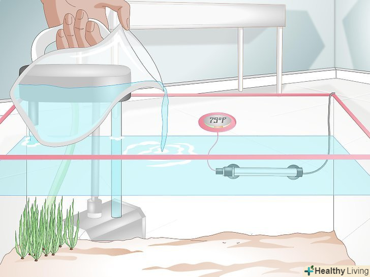 Забезпечте щоденне оновлення води. часткова підміна води є важливою частиною загального благополуччя ваших риб, особливо в період розмноження. Щодня оновлюйте 20% води в акваріумі, точно не перевищуючи цей обсяг.- Не забувайте додавати Кондиціонер у воду, яку Ви заливаєте в акваріум. Кондиціонери нейтралізують хімікати, шкідливі для ваших риб, в т. ч. прибирають хлор і нейтралізують хлораміни. [4]