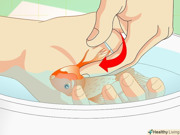 - Вам не обов'язково тримати риб під водою, коли ви розтираєте їх статеві отвори. Золота рибка, як і інші риби, може дихати поза водою, нехай і не так добре. Просто тримайте їх без води не більше 30 секунд за раз.