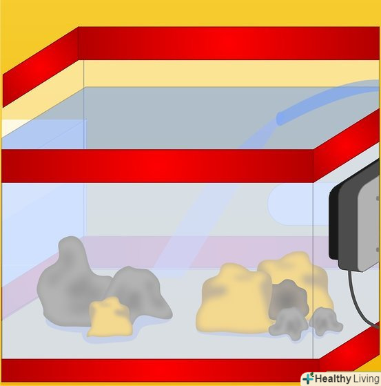 Додайте «живі камені», приблизно на 20% обсягу, і розташуйте їх на свій смак. камені можна класти на арагонітове пісочне ложе, або навіть перед додаванням піску. Живі камені можна придбати онлайн, У інших любителів, або в місцевому магазині акваріумів.