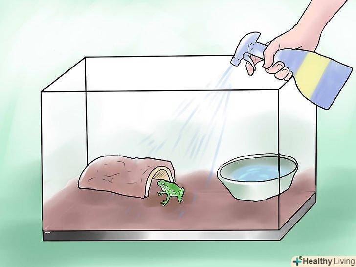 Обприскуйте тераріум водою кожен день або два. не дозволяйте субстрату висохнути, але і не перезволожуйте його. Поведінка вашої жаби підкаже вам, коли субстрат починає висихати, - вона буде тривалий час безвилазно сидіти в мисці з водою.