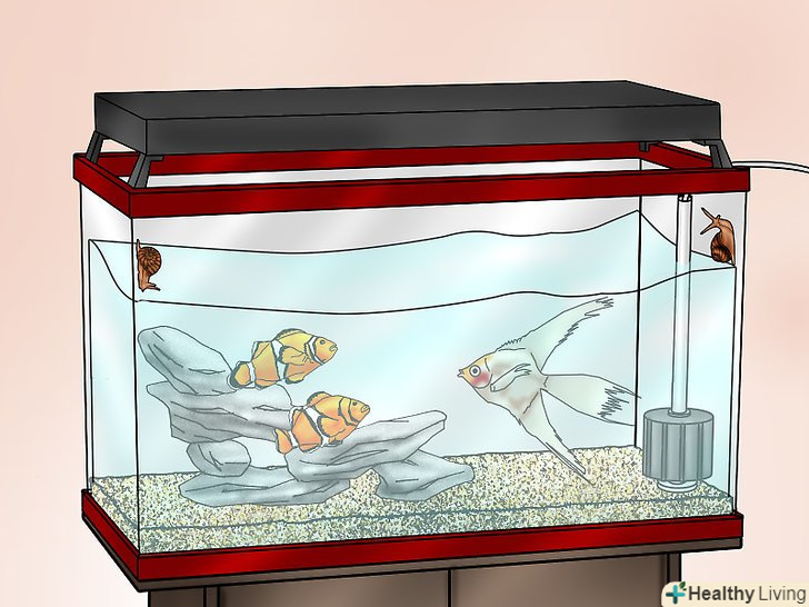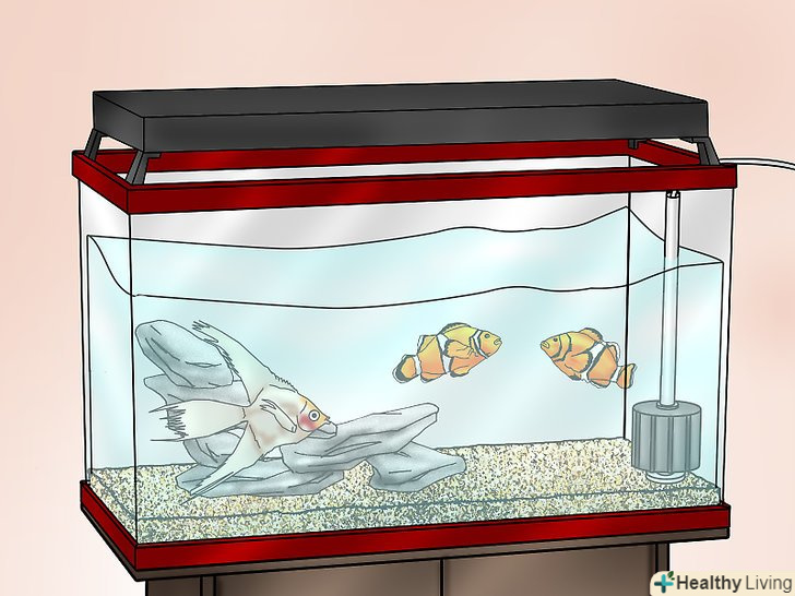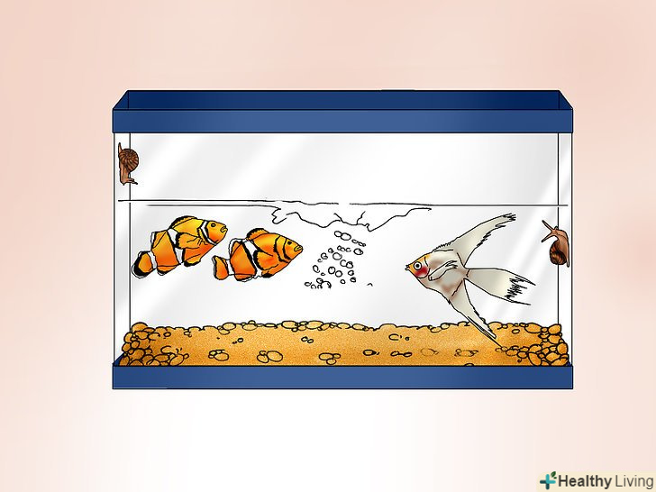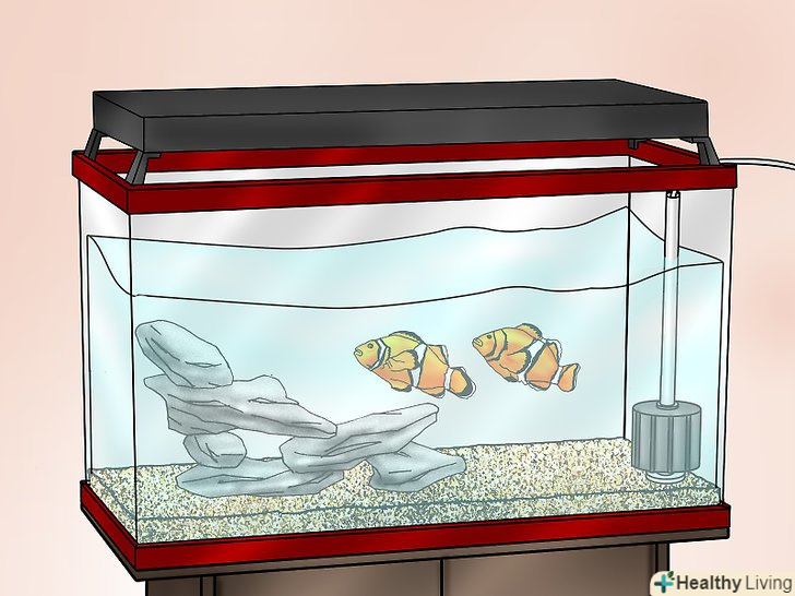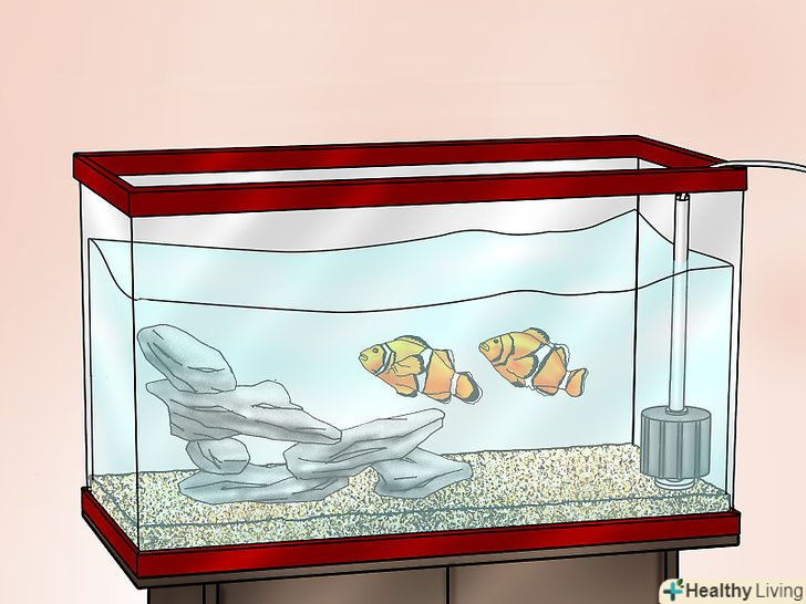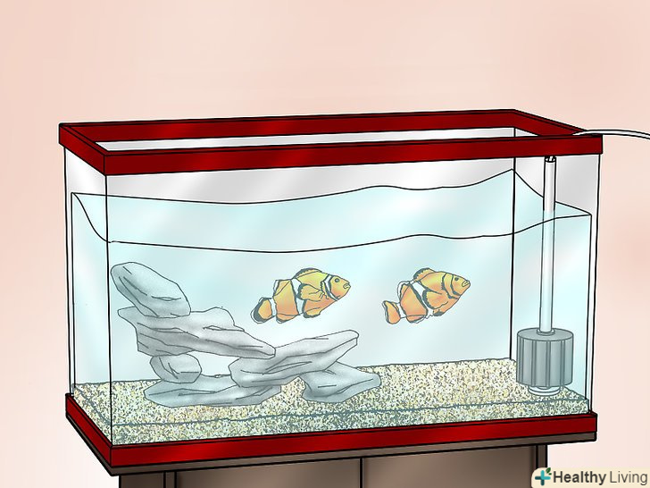 Придбайте Акваріум об'ємом хоча б 75-115 літрів. відповідний Акваріум необхідний для того, щоб рибка залишалася здоровою і задоволеною. На жаль, в Інтернеті даються дуже різні рекомендації щодо акваріума для риби-клоуна. На деяких ресурсах радять використовувати Акваріуми об'ємом 30-40 літрів, в той час як інші рекомендують Акваріуми місткістю не менше 75-115 літрів. [1] в якості загального правила краще приготувати занадто великий, ніж маленький акваріум, оскільки невеликі Акваріуми вимагають додаткового догляду і набагато частіше схильні до різних санітарних проблем. Таким чином, для здоров'я і безпеки риби-клоуна краще придбати акваріум об'ємом не менше 75-115 літрів.- Не слід недооцінювати небезпеки, які пов'язані з занадто маленьким акваріумом. При недостатній фільтраційній системі акваріума вода може швидко забруднитися, що загрожує рибці такими проблемами зі здоров'ям, як плавникова гниль, морський іхтіофтіріоз тощо. Крім цього, якщо в акваріумі живе кілька рибок, тіснота може привести до боротьби за територію, що загрожує стресом, травмами і навіть смертельними наслідками.
