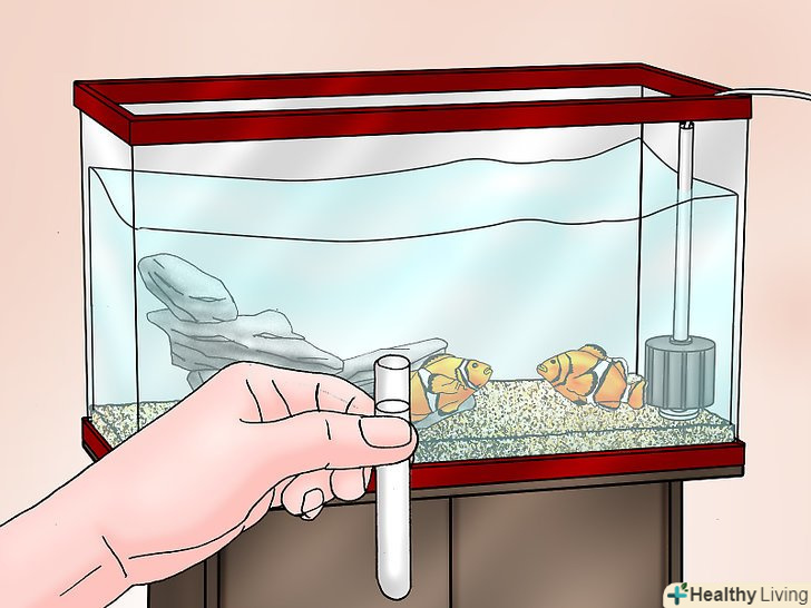 Регулярно перевіряйте якість води. крім щоденного спостереження за роботою пристроїв для підтримки якості води, необхідно перевіряти і саму воду, щоб забезпечити рибі-клоуну оптимальні умови. Відразу ж після заповнення акваріума водою слід приблизно раз в день перевіряти її якість. Після того як стан води стабілізується на потрібному рівні, можна перейти до перевірок раз в тиждень. Нижче наведені оптимальні параметри води та інструменти, якими можна виміряти їх (ці інструменти можна придбати в зоомагазині):- Температура: 24-30 градусів Цельсія – термометр