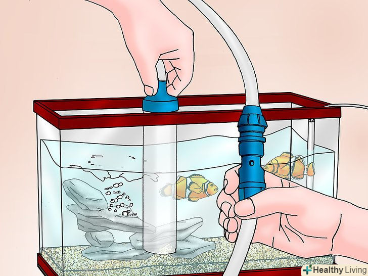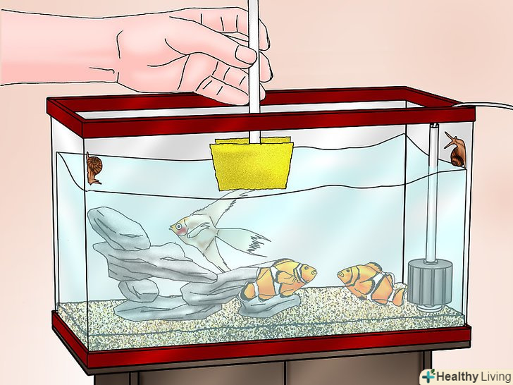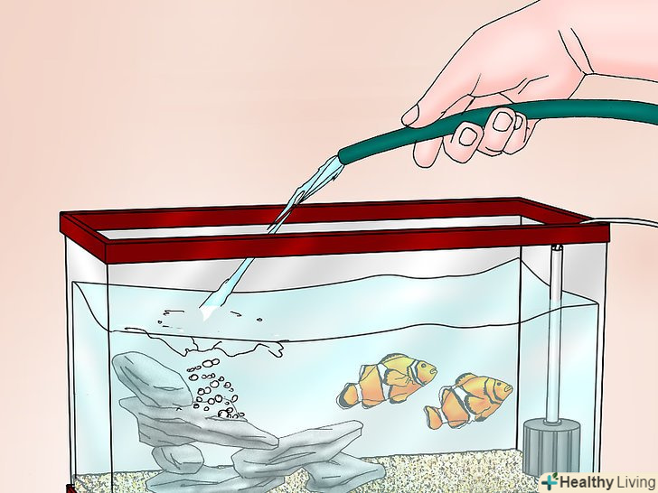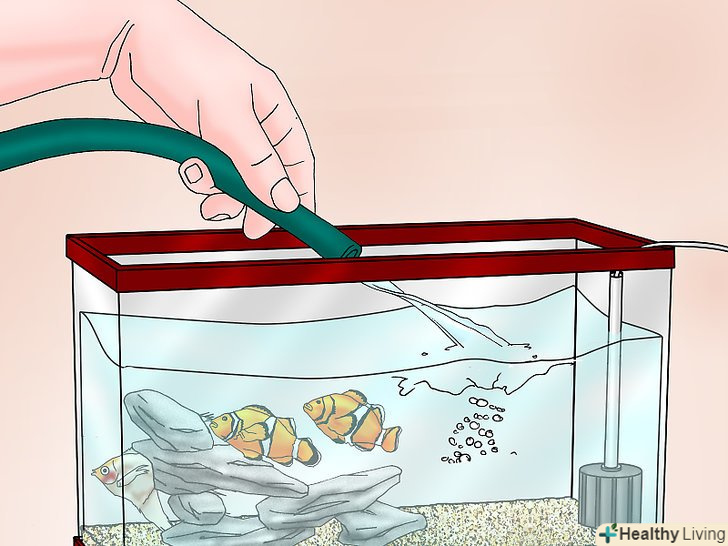 Раз в кілька тижнів міняйте в акваріумі приблизно чверть води. незважаючи на те що Акваріуми часто описують як "замкнуті системи", на практиці в них необхідно регулярно додавати свіжу воду, щоб вони залишалися чистими і придатними для життя риб. Немає необхідності міняти всю воду за один раз, досить поступово і регулярно (раз в 2-3 тижні) відливати з акваріума приблизно чверть води і замінювати її на свіжу.- Однак врахуйте, що свіжа вода повинна мати відповідну солоність, інакше заміна води може привести до небажаних і навіть небезпечних коливань вмісту солі в акваріумі.