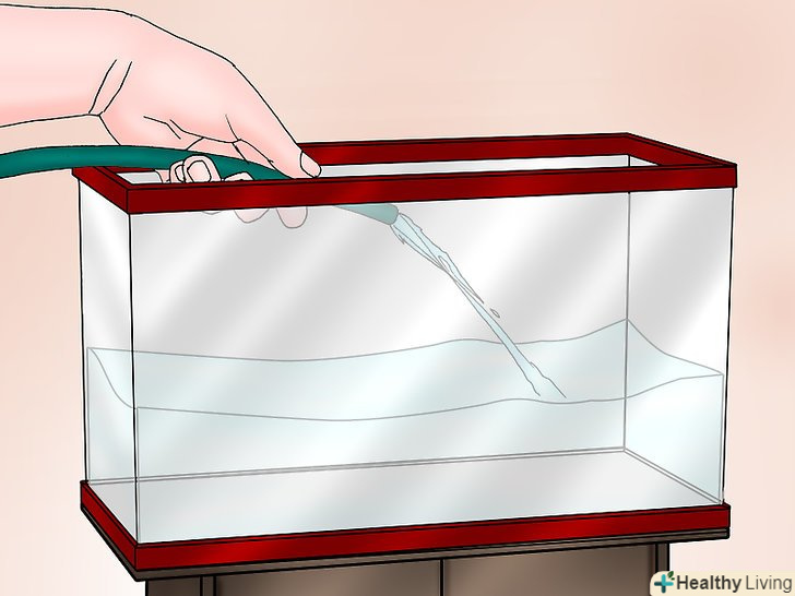 Перевірте, чи немає у акваріума дефектів. ви адже не хочете раптово виявити, що акваріум протікає або недостатньо міцний, коли заповніть його водою. Нормальний акваріум не пропускає воду і надійно утримує її всередині. Перевірте, чи немає у акваріума вад. Для цього скористайтеся наступними методами:- Перевірте, чи не протікає Акваріум. Для цього поставте його в тому місці, яке не страшно залити (наприклад, в душі або на присадибній ділянці), і заповніть водою приблизно на 1/3. Витріть зовнішні стінки акваріума сухим рушником і почекайте близько години. Після цього перевірте, чи не проступила вода на кутах акваріума і не просочується вона через його дно. Якщо ви помітите воду зовні акваріума, значить, він протікає, і його слід обміняти на інший.