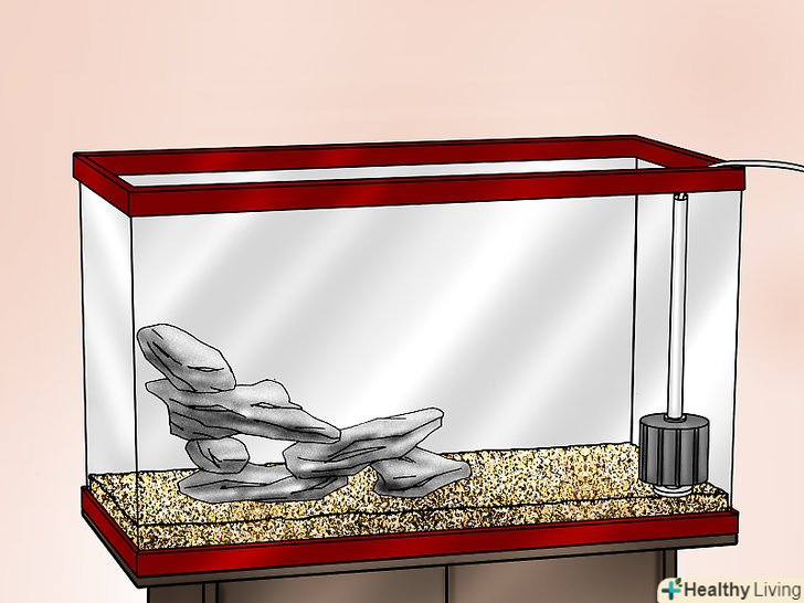 Додайте в акваріум грунт і розпилювачі повітря. перш ніж класти грунт (матеріал у вигляді гравію або гальки, яким покривають дно акваріумів) в акваріум, обполосніть його в друшляку. Використовуйте спеціальний грунт для акваріумів, який можна придбати в зоомагазині, а не звичайний гравій. Якщо у вашому акваріумі донний фільтр, насипте гравій так, щоб він повністю покривав фільтрувальні пластини приблизно на 1,2-2,5 сантиметра.- Якщо ви використовуєте розпилювачі повітря (Декоративні пристрої, які виділяють бульбашки повітря і сприяють циркуляції води), обполосніть їх і розмістіть на дні акваріума на даному етапі.