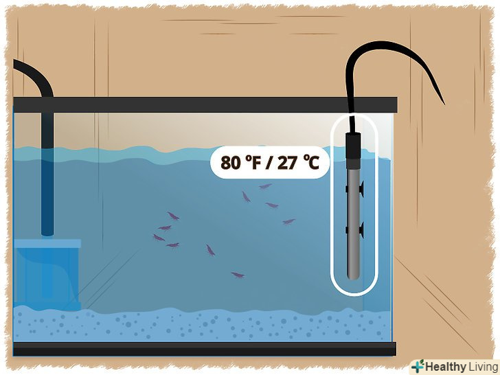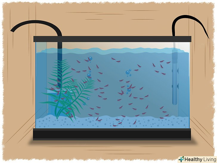 Обладнайте Акваріум. вам знадобиться акваріум від 20 до 40 літрів, який повинен бути нагрітий до +24 °C +27 °C під час прохолодних ночей, гравій (Темний, щоб креветки менше піддавалися стресу) і циклічні бульбашки (фільтр).- Перед тим як встановити новий фільтр в новий акваріум, встановіть його для початку в старий Акваріум, включіть його і протримаєте протягом 4 тижнів . "Червоні вишні" не переживуть процес боротьби зі шкідливими елементами і помруть від високого рівня аміаку або нітритів.