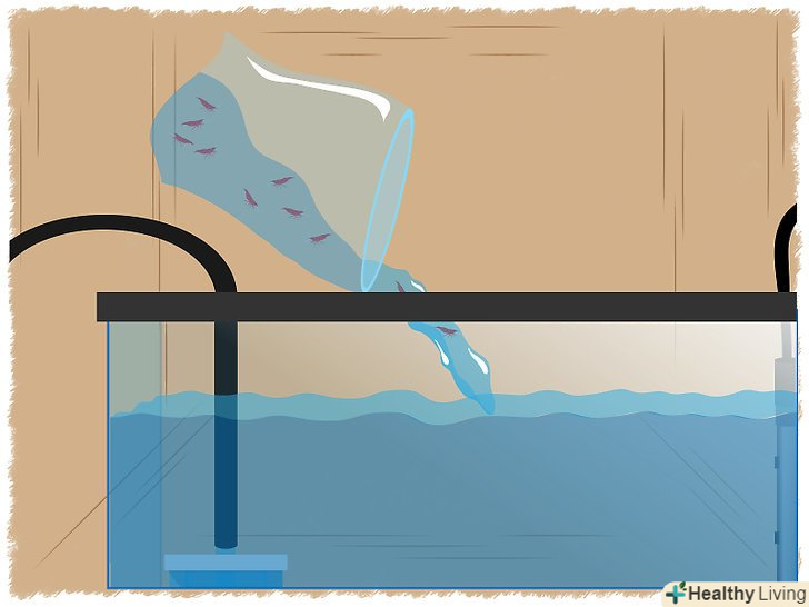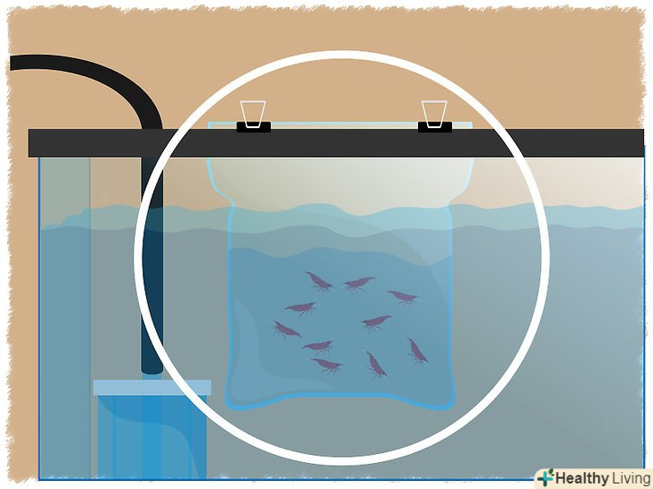 Покладіть креветок в акваріум. параметри температури і води (такі як рН) повинні бути приблизно рівні, щоб не шокувати креветок .