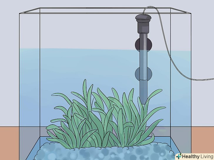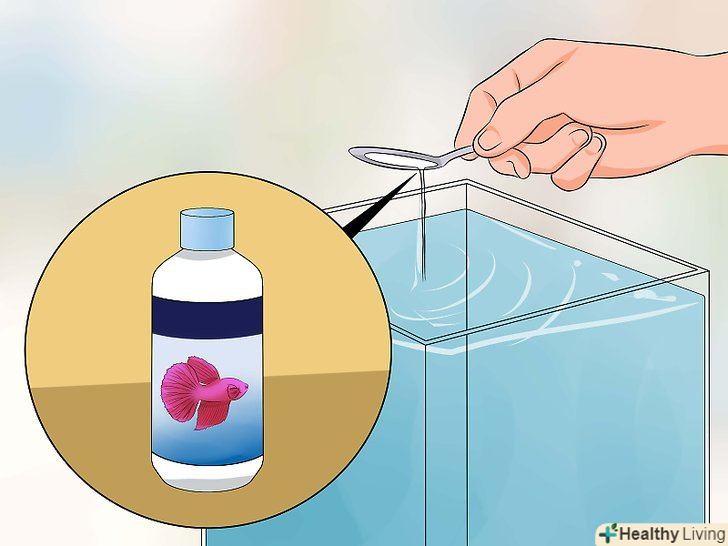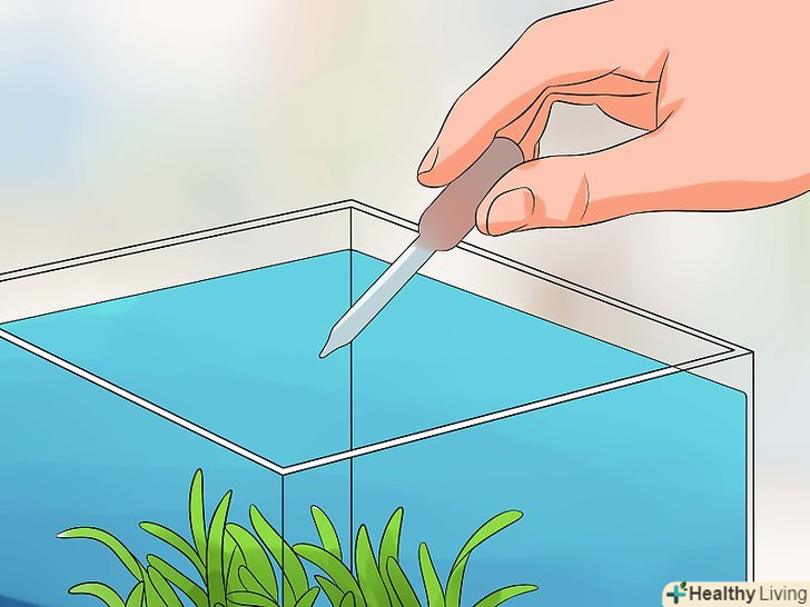 Налийте в акваріум чисту воду. Вода — один з найбільш ключових елементів облаштування акваріума. Якщо будете використовувати воду безпосередньо з-під крана, це може погубити вашу рибку. Такі хімічні речовини, як хлор та інші сполуки, що використовуються для очищення водопровідної води, дуже небезпечні для риб. [5] вони здатні завдати істотної шкоди здоров'ю риби і скоротити тривалість її життя. З цієї причини важливо придбати спеціальний кондиціонер для підготовки акваріумної води, перш ніж садити в акваріум свого вихованця. Можливо, воді також буде потрібно дати відстоятися кілька днів, щоб в ній з'явилася достатня кількість розчиненого кисню і риба могла нормально дихати.