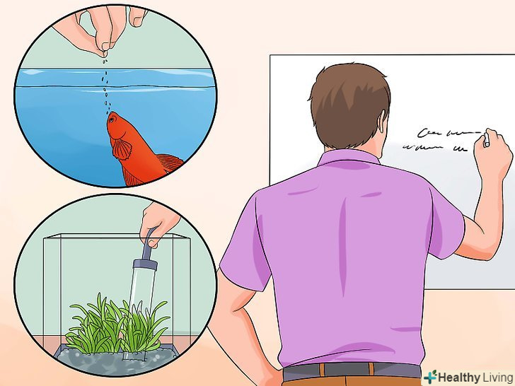 Складіть для себе графік догляду за акваріумом. без постійного належного догляду ваша рибка помре завчасно. Пам'ятайте, що риба не в змозі повідомити вам про те, що вона голодна, або про те, що вода в акваріумі стала брудною. Щоб максимально збільшити тривалість життя півника, ви повинні забезпечити йому постійний догляд. Склавши для себе графік догляду за акваріумом, ви допоможете собі не забути нічого важливого.