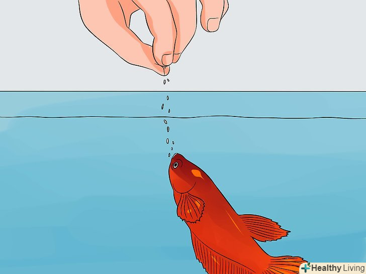 - По можливості годуєте рибку живим кормом. За даними досліджень, спеціалізовані сухі корми з зоомагазину починають чинити негативний вплив на здоров'я риб, якщо перевищують 25% повсякденної дієти. [8] тільки деяким півникам вдається потрапити в такі умови утримання, при яких їх постійно годують живим кормом. Але незважаючи на те, що годування риб живим кормом може бути дорогим і времязатратним задоволенням, воно дає чималі переваги для здоров'я півника.