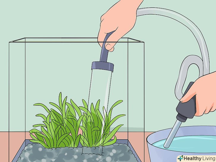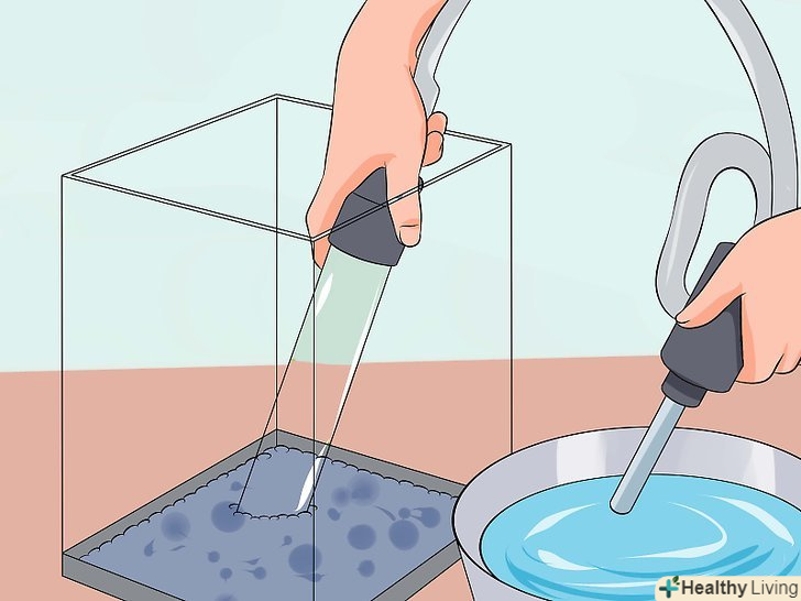 Не забувайте чистити акваріум. стінки акваріума можуть обростати водоростями, які потрібно видаляти для того, щоб подбати про якість води і про хорошу видимість для спостереження за рибкою. Камені і пісок в акваріумі теж потрібно періодично чистити або замінювати. Скупчуються на дні акваріума відходи життєдіяльності Риби можуть спровокувати у неї захворювання і погубити її. Вирішити проблему здатні фільтри, але навіть при їх наявності, можливо, вам все ж доведеться періодично чистити дно акваріума від відходів за допомогою сифона.- Купіть акваріумний сифон, який дозволить вам збирати бруд і воду з дна акваріума і зливати їх відразу в відро.