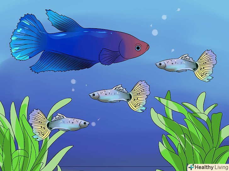 Виберіть собі здорову рибку. купуйте рибку тільки в тому зоомагазині або у того заводчика, який забезпечує хороший догляд своєму акваріуму. Звичайно, часом буває важко зрозуміти, яким було життя рибки До її придбання. При цьому не можна дізнатися напевно, який її вік і заражена вона будь-якими захворюваннями. Часом рибки в зоомагазинах містяться в поганих умовах, піддаються стресу і можуть бути хворі. [1] ці фактори здатні вплинути на ранній догляд з життя вашого вихованця.- Здорові риби зазвичай більш активні, ніж хворі.