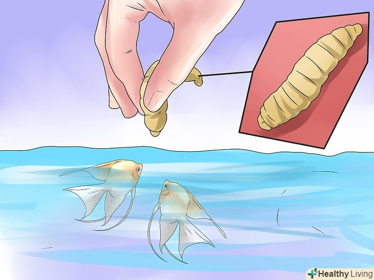 Забезпечте риб належною дієтою. добре годувати скалярій різноманітними кормами! Вони добре поїдають пластівці для тропічних риб, звичайний корм, гранульований корм для цихлид, мотиля і артемії.