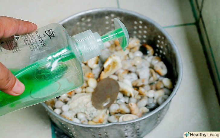 Додайте в гравій трохи м'якого мила. тут вам доведеться злегка забруднити руки. Після промивання гравію від екскрементів протріть його милом. Це допомагає його вичистити краще, ніж ви може припустити. При необхідності ви можете купити спеціальне мило в зоомагазині. Акуратно і ретельно його змийте.- Обов'язково повністю змийте мило! Це дуже важливо. Не можна допустити, щоб воно потрапило рибі в організм.