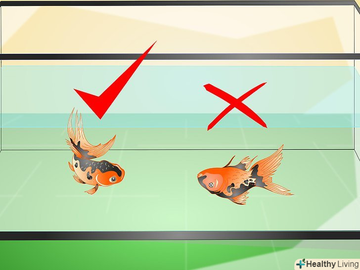 Виберіть мешканця для свого акваріума. підшукайте здорову і красиву золоту рибку. Не вибирайте рибку з акваріума з хворими або померлими рибками. Знайдіть рибку, яка цікавиться навколишнім оточенням, активно рухається, пощипує водорості і поводиться як господар акваріума. [8]- Загляньте рибці в очі. Це не жарт! Очі Золотої рибки повинні бути ясними, а не каламутними.