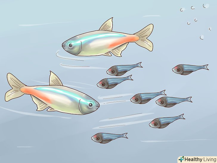 Пересадіть підросли мальків до дорослих риб. через три місяці мальків можна пересадити в основний акваріум з дорослими неонами. Постарайтеся не робити цього раніше зазначеного терміну, так як дорослі рибки будуть ображати мальків, можуть з'їсти їх або травмувати. [15]- Зверніть увагу, що деякі мальки можуть загинути, що б ви не робили. Мальки схильні частіше хворіти і більш чутливі до травм.