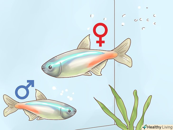 Визначте стать риб. визначати стать неонів перед нерестом необов'язково, так як завжди можна посадити в нерестовик не пару, а більшу кількість риб, і нерест повинен пройти успішно. [5] проте, якщо у вас є бажання визначити стать неонів тетра, то самці і самки мають свої риси, які допоможуть вам їх розрізнити.- Тіло у самок неонов крупніше, а черевце — об'ємніше, ніж у самців.