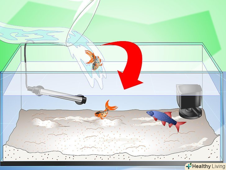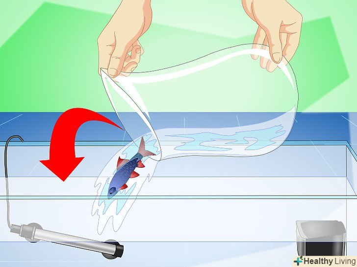 Запустіть рибу в акваріум незабаром після того, як придбаєте її. Таїландський лабео не може жити довше пари годин в кульку з водою, який вам вручать в зоомагазині. Коли ви доставите рибу додому, покладіть на півгодини кульок з нею на поверхню води акваріума, щоб ваш новий вихованець поступово звик до температури води. Можна також хлюпнути в кульок трохи води з акваріума, щоб риба швидше звикла до нової для неї воді. [11] після цього перемістіть рибу в акваріумну воду. Вилийте воду з кулька, а не додавайте її в акваріум, так як в ній могли зібратися відходи. [12]
