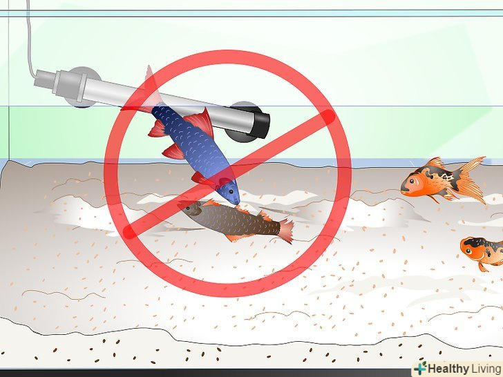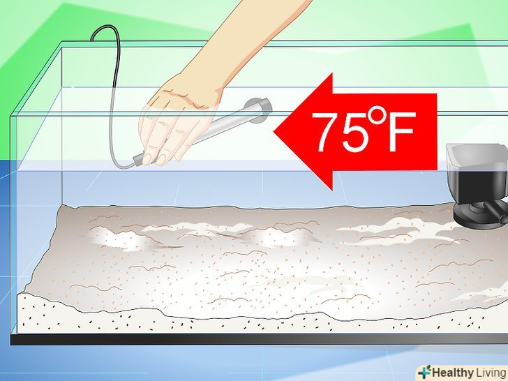 Підтримуйте помірну температуру води. таїландському лабео найкраще підходить температура 22-26 градусів Цельсія. Щоб утримувати температуру води в цьому інтервалі, придбайте відповідний акваріумний нагрівач. Встановіть температуру нагрівача в межах 22-26 градусів Цельсія. [10]- Необхідно тримати Акваріум подалі від усього, що може привести до різких перепадів температури. Розмістіть акваріум на віддалі від вікон, нагрівачів і вентиляції.