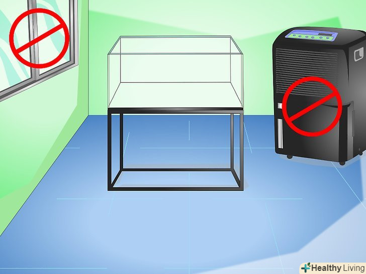 Знайдіть безпечне місце для акваріума. його слід розмістити далеко від того, що може викликати значні коливання температури, тобто вікон, кондиціонерів, радіаторів опалення, повітряних вентиляторів. Крім того, акваріум повинен знаходитися в тихому місці, в стороні від шуму і жвавих ділянок будинку. Не розміщуйте його біля дверей, на підлозі або в галасливій передпокої.- Постарайтеся знайти місце неподалік від електричної розетки і джерела води. Біля акваріума має бути достатньо місця, щоб ви могли без проблем доглядати за ним і спостерігати за своїми вихованцями. [3]