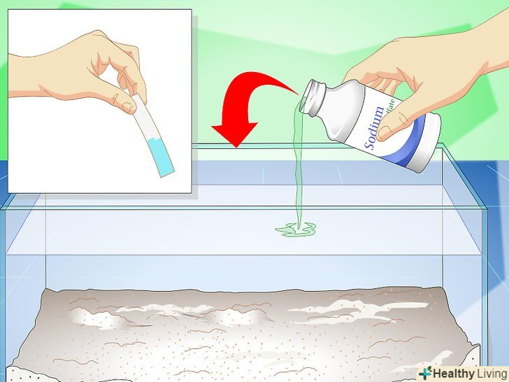 - Крім додавання в воду тіосульфату натрію і Амкеля, слід забезпечити відповідний рівень pH. У зоомагазині можна придбати різні кислоти і луги, які призначені для регулювання рівня pH в акваріумі. [8] перевірте рівень pH і при необхідності змініть його, так щоб він знаходився в межах 6,5 - 7,5. [9]