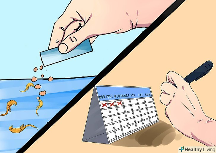 Продовжуйте годувати їх один раз на день, поки їм не виповниться 5 днів, потім вони будуть харчуватися 2-3 рази на день. з 7 днів і старше згодовуйте цілу гранулу кожному щитню 2-3 рази на день. Продовжуйте годувати, поки вони не перестануть їсти, а потім приберіть зайву їжу, яку вони не з'їдять.