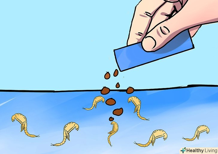 Наповніть ваш резервуар приблизно 1 л (1/4 галона) дистильованої або бутильованої джерельної води (бажано бутильованої джерельної води). переконайтеся, що температура води Близько 23-29 градусів за Цельсієм або від 75-80 градусів за Фаренгейтом, і що є необхідне освітлення, перш ніж опустити яйця в резервуар. Помістіть шматок чорного паперу позаду резервуара. Якщо ви купили набір і в ньому був детрит (яйця), дотримуйтесь інструкцій і додайте його.