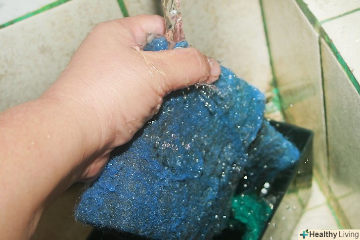 Прополощіть губку фільтра в старій воді, яку ви тільки що замінили, так як вона може бути сильно забруднена і послужити джерелом повернення забруднень у воду. ніколи не мийте губку фільтра водопровідною водою, так як міститься в ній хлор погубить корисні бактерії.