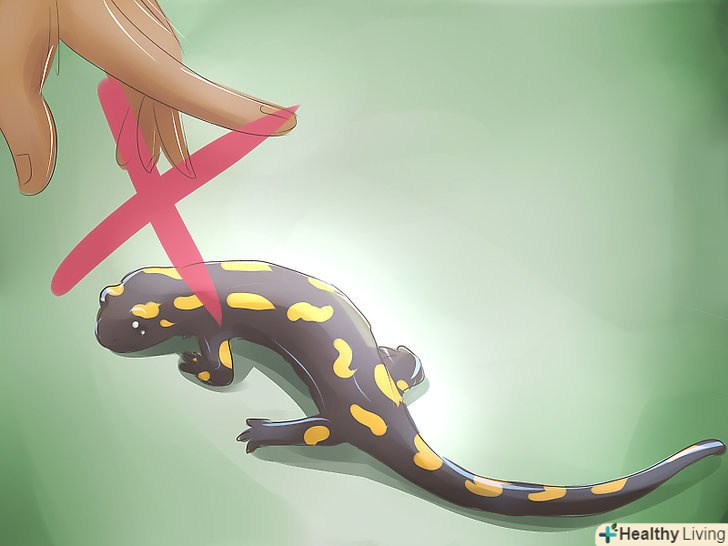 Не беріть саламандру на руки. незважаючи на те, що їх милі маленькі мордочки можуть викликати в вас бажання взяти їх в руки, робити це не рекомендується. Жир, що виділяється людськими руками, може нашкодити саламандрам. Так само і секрет, що виділяється шкірою саламандр, може нашкодити людині. Тому вам обом буде краще, якщо ви будете тільки спостерігати за Вашою саламандрою, а не брати її на руки.- Якщо вам все-таки потрібно взяти саламандру руками, наприклад, щоб дістати з тераріуму, або якщо вона захворіла, вимийте ваші руки гарячою водою з милом. Ретельно змийте мило з рук.