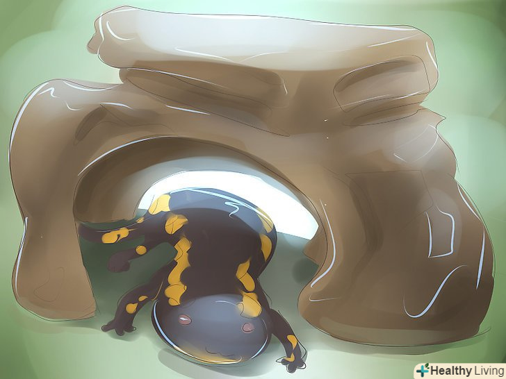 Зробіть кілька притулків. незалежно від виду саламандри, яку ви утримуєте, потрібно спорудити кілька надійних притулків. Саламандри можуть стати нервовими, тому дуже важливо, щоб у них були такі місця, де б вони могли розслабитися. Вашу саламандру можуть ощасливити печери з каменів, великі осколки кераміки, великі шматки кори, а також магазинні готові 'укриття '.
