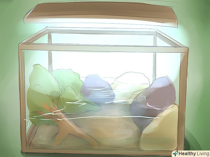 Встановіть ваш тераріум. знову ж таки, все буде залежати від виду вашої саламандри. Пам'ятайте, що тут дані лише загальні вказівки-ви можете самі придумати, як краще вирішити ті чи інші завдання в вашому тераріумі.- Водний тераріум: використовуйте акваріум, щоб поселити в нього Вашу саламандру. Покладіть на дно промитий акваріумний гравій шаром в 5 сантиметрів. Зробіть ухил з гравію, щоб його товщина переходила від двох до трьох дюймів. Можете посадити водні рослини, але пам'ятайте, що саламандри можуть їх пошкоджувати, тому будьте готові часто їх пересаджувати.