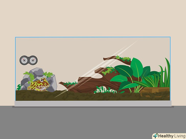 Після всього переконайтеся, що в акваріумі достатньо місць, де можна сховатися і жаба може вільно пересуватися. так само переконайтеся, що їй вистачає місця в акваріумі..