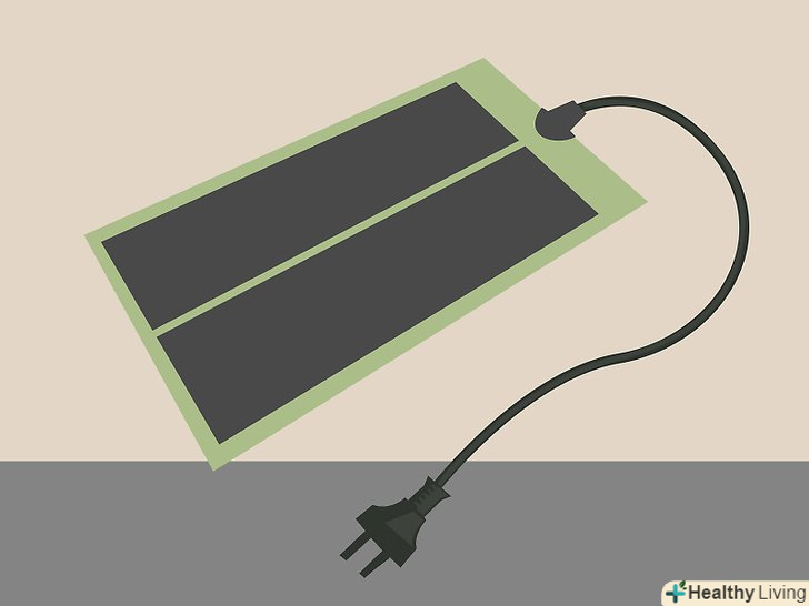 Тепер поставте обігрівальну підставку таким чином, щоб навіть вночі в акваріумі була правильна температура. Гріючу підставку треба помістити під акваріум із зовнішнього боку, щоб якщо жаба буде капати − не обпекла себе.