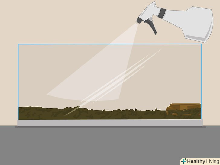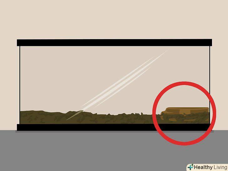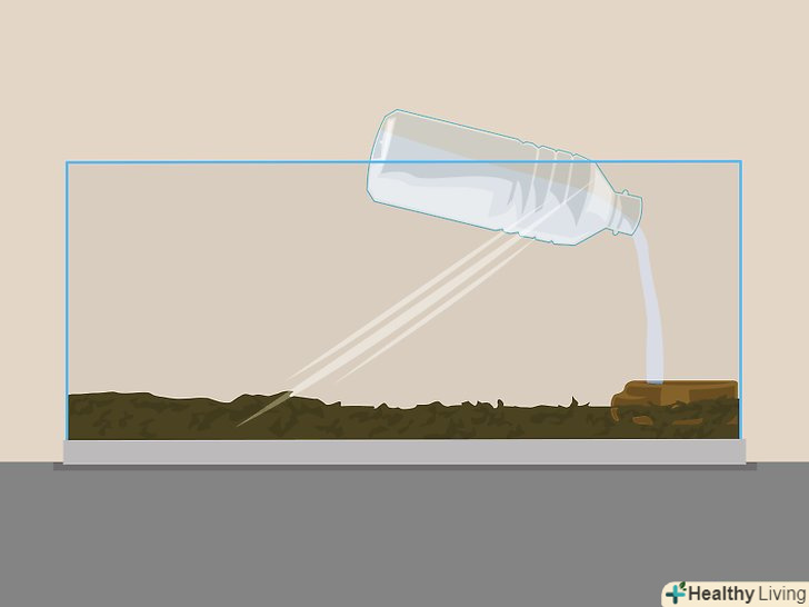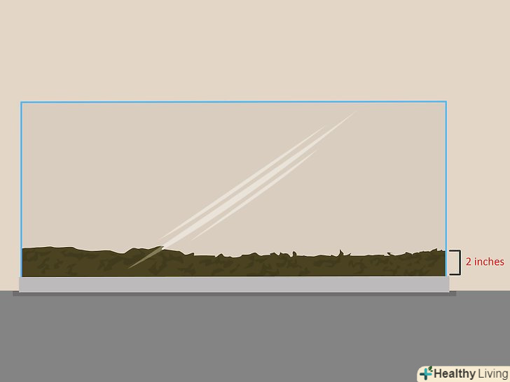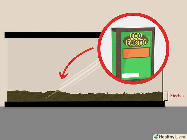 Насипте 5 см. субстрату. Це повинно бути кокосове деревне волокно або кокосове лушпиння. Ви можете придбати їх в зоомагазині (непогані бренди Eco Earth і Bed a Beast). Такий тип субстрату не дорогий, але його треба мене раз на місяць і сприскувати водою два рази в день. Ні в якому разі не використовуйте камені і мох, так як вони можуть викликати сильний тиск і вбити вашого вихованця. .